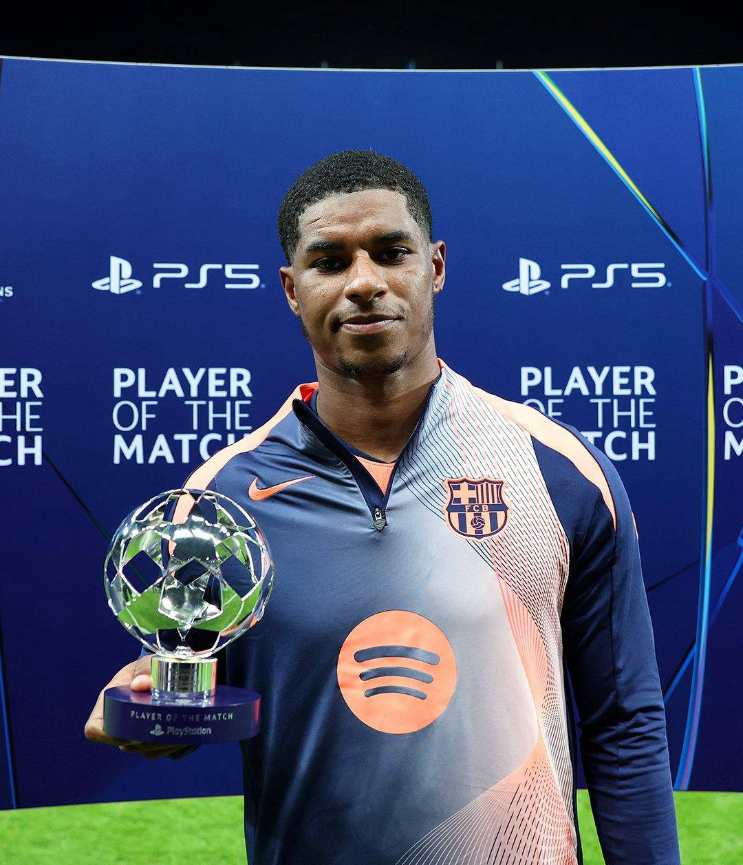 由于亚马尔受伤,拉什福德被迫连续首发出场代表巴萨。上半场表现平平的他在下半场焕发神采,先是用头球攻破对手球门,打破僵局;随后不到十分钟,再次攻入一球,一记华丽的世界波将比分定格在2-1。拉什福德毫无疑问当选比赛最佳球员。